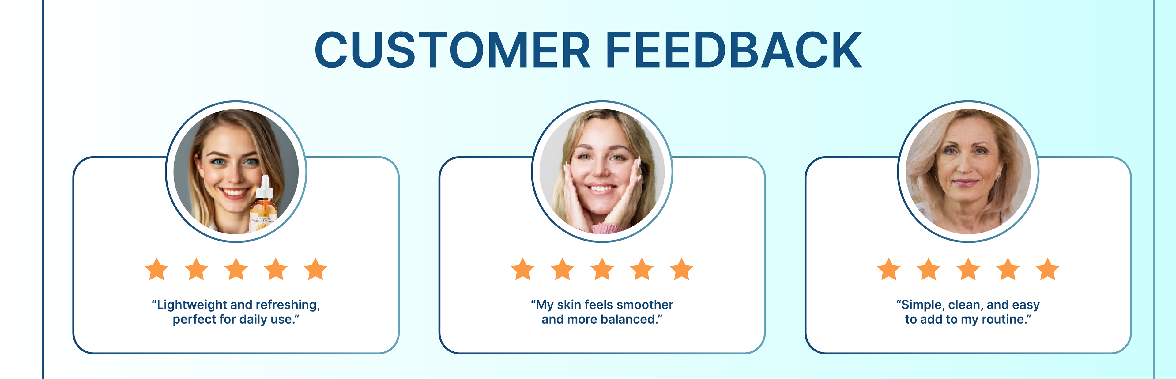 Visual comparisons and customer feedback shown in the visuals are fictional and created for presentation only.