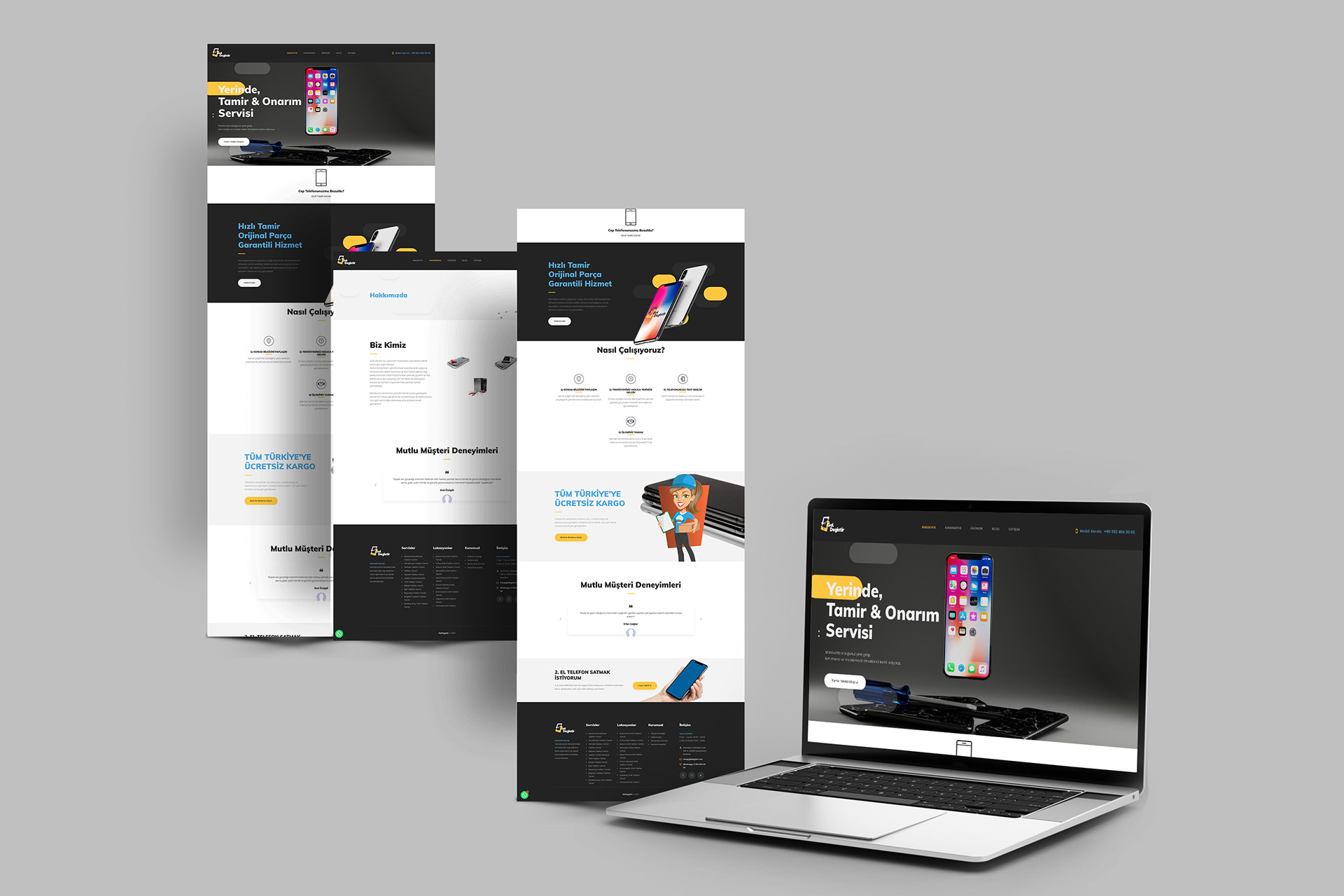 This project showcases the logo and website design process for Gel Degistir, a local service brand focused on fast and reliable mobile phone repair.