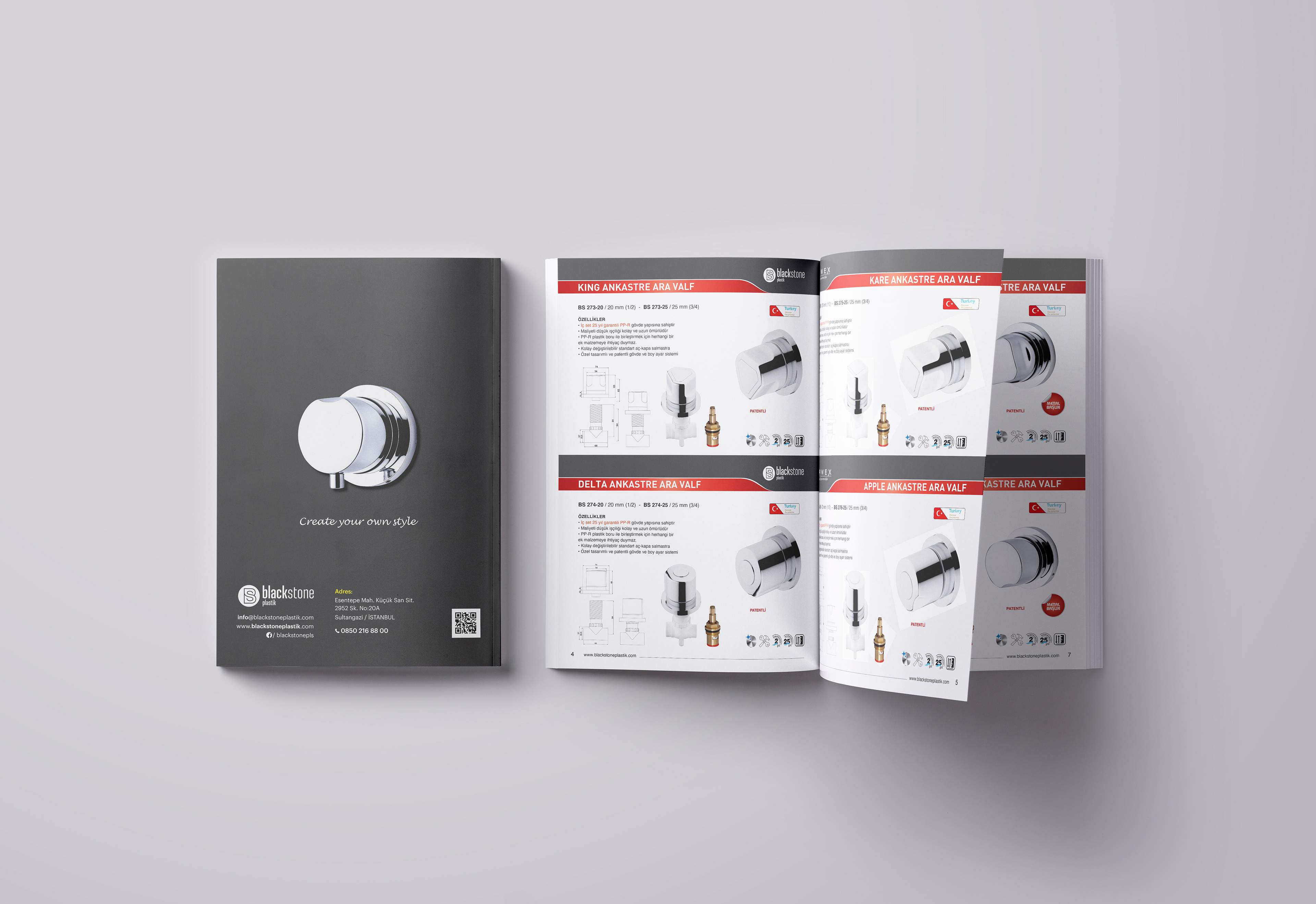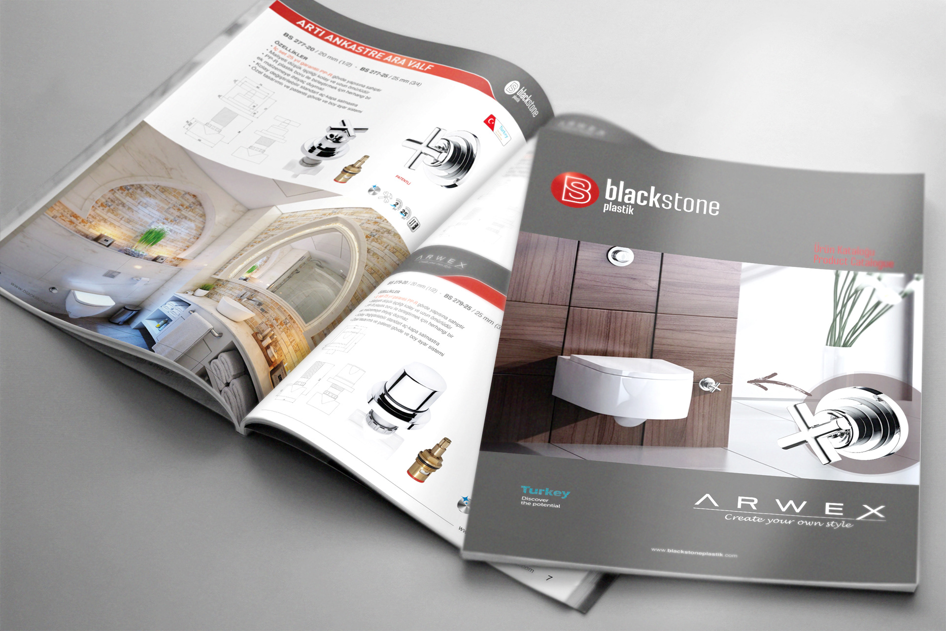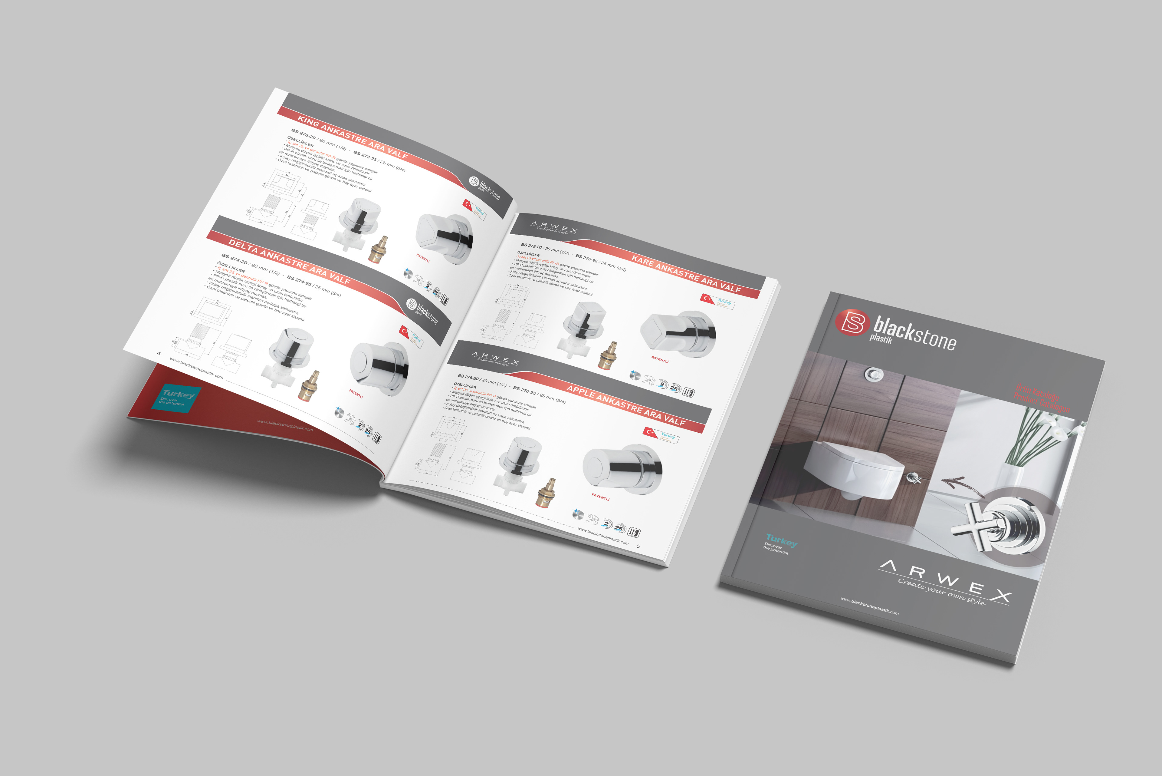 This project showcases a product catalog design created for Blackstone and ARWEX, brands operating in the bathroom and sanitary fittings industry.