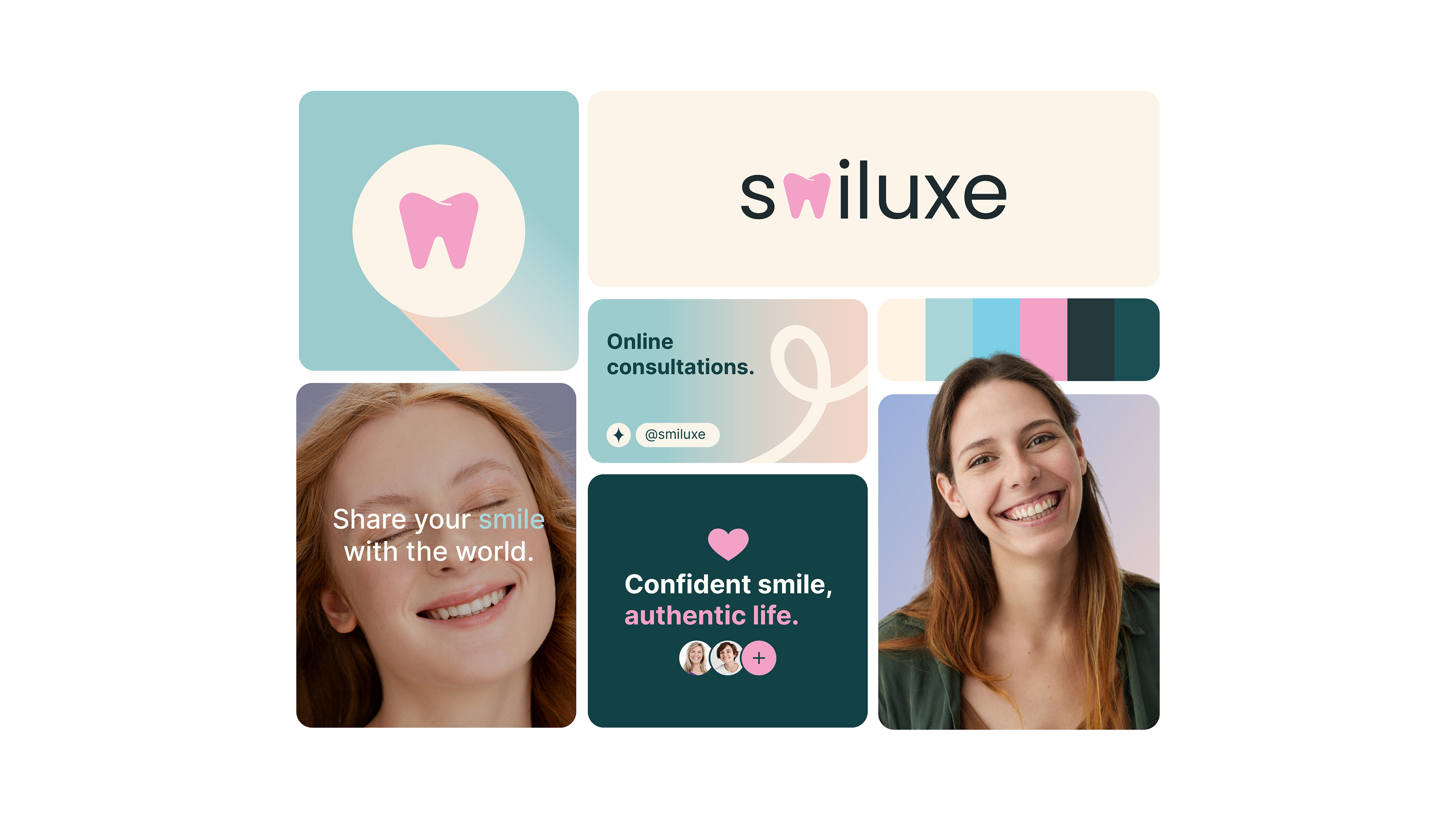 The identity focuses on clarity, softness and confidence, reflecting the emotional side of smiling and personal care.