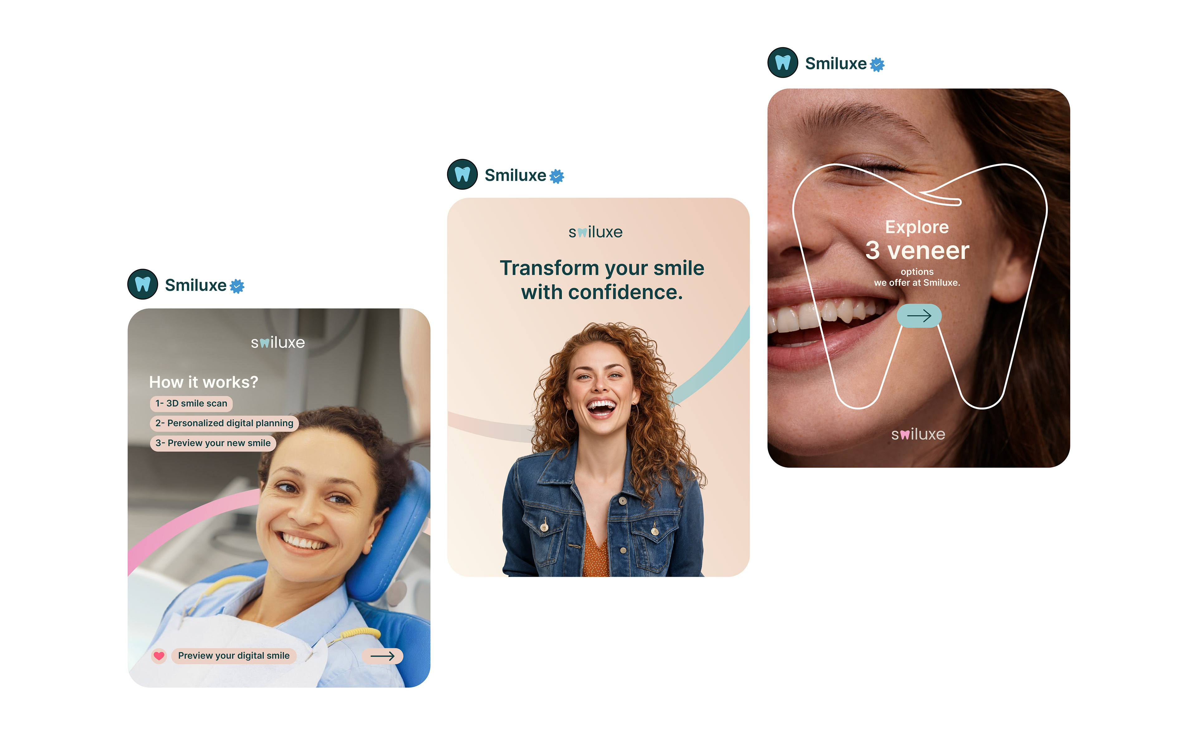 Smiluxe was created as a fictional brand concept to showcase branding, visual language, typography, social media assets and real-world mockups for the aesthetic dentistry sector.